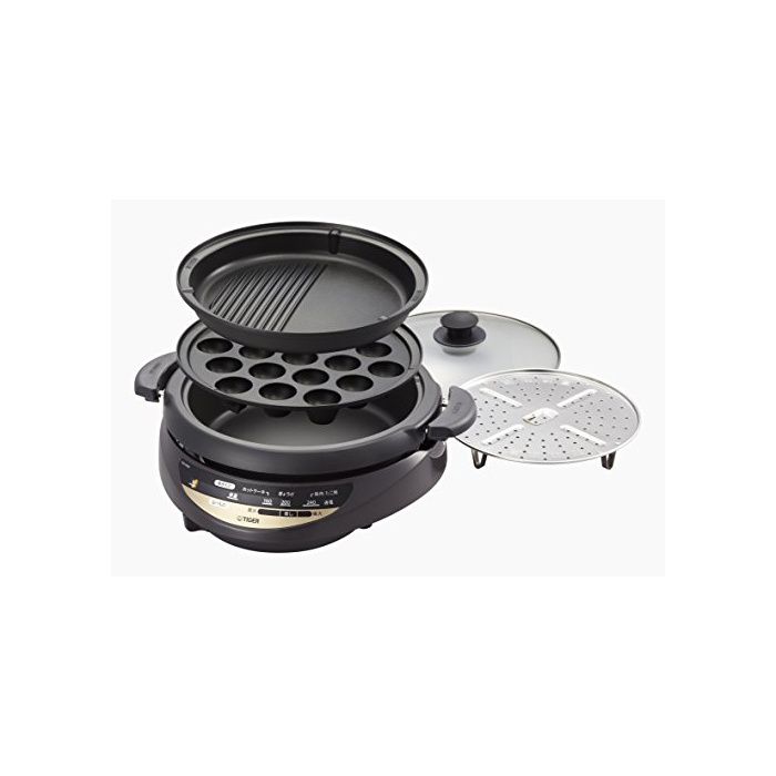 원본상품명: タイガ? グリル鍋 3.7L プレ?ト 3枚 タイプ 深鍋 たこ?き ?肉 プレ?ト 蒸し台 蓋 付き ブラウン CQG-B300-T