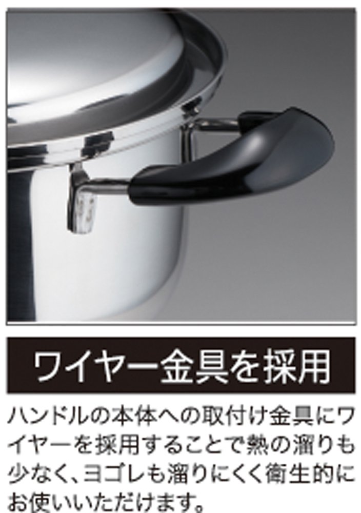 "Yoshikawa Blanche Two-handed Pot 22cm SJ1935" is a two-handed stainless steel three-layer steel boasting excellent thermal conductivity that can use gas fire and IH.