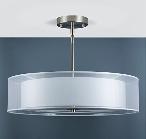Linea di Liara Grazia 20-Inch Three-Light Double Drum Convertible Ceiling Fixture, Brushed Nickel with a White Fabric Shade LL-P117-BN