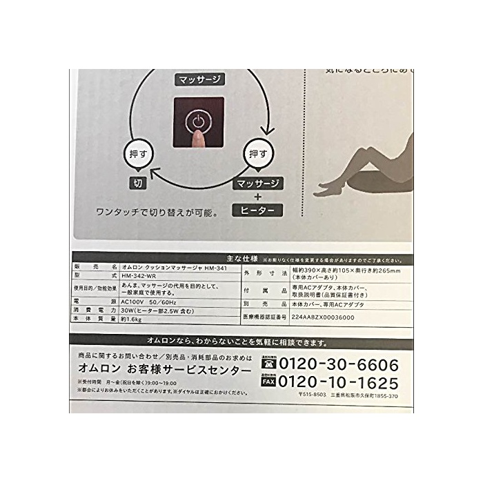 원본상품명: オムロン クッションマッサ?ジャ ワインレッドOMRON HM-342-WR