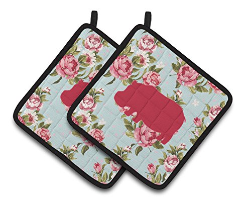 Caroline's Treasures Hippopotamus Shabby Chic Blue Roses Pair of Pot Holders BB1130-RS-BU-PTHD, 7.5HX7.5W, Multicolor