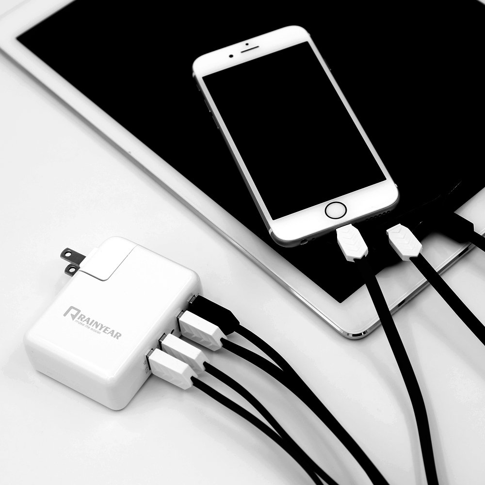 【4 terminals can be charged simultaneously】 One 2.1 A (applied to iPad), 1 A (applied to iPhone), 0.5 A (applied to iPhone), 0.5 A (applied to Android), maximum