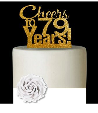 CakeSupplyShop Item#079CTA - 79th Birthday / Anniversary Cheers Super Gold Glitter Sparkle Elegant Cake Decoration Topper