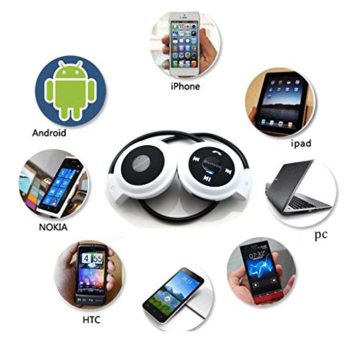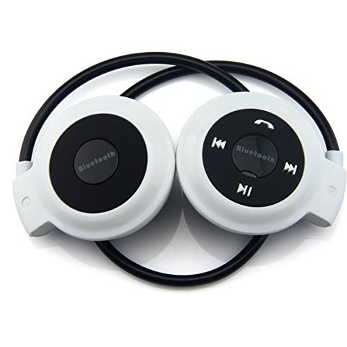 TopePop Universal Sports Stereo Wireless Bluetooth Headset Earpiece Earphones Universal Music Earbuds with Built-in Microphone MP3 FM for Android Ios Cellphone Smartphone (White)