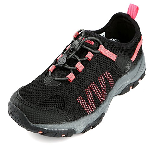 Studio : Northside Publisher : Northside Binding : Shoes Product Description An amphibious adventure shoe, the niagara offers a secure fit on land and through the water. Mesh venting in the upper pairs with perforated insoles and flow-through drain ports in the sole for comfort and quick-drying. A quick draw, elastic lacing system also makes getting the shoe on and off a Cinch. 0