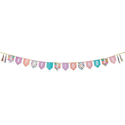 Studio : Talking Tables Publisher : Talking Tables Binding : Kitchen Product Description A versatile colorful birthday bunting will be a hit at trendy fun parties. Only one side has Happy Birthday lettering so it can be used for any color popping celebrations. 4 meters of double sided paper bunting with foil tassels at either end. Part of the charming Party Time range from Talking Tables. Mix and match the range of party accessories and decorations for the fully coordinated look. 0