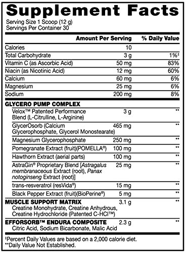 Patented pump technology, Velox - 1:1 Citrulline and Arginine blend to support blood L-Arginine levels