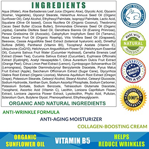 KISS YOUR WRINKLES GOODBYE AS YOU USHER IN YOUNGER LOOKING SKIN. Look younger, feel amazing, and knock some years off your face and body! Trigger collagen production, reduce the appearance of wrinkles by activating younger-looking skin with this precisely-formulated combination of high-potency botanical nutrients including Hyaluronic Acid, CoQ10, Vitamin B5, Vitamin C and protein peptides. Helps all skin types - normal, dry, very dry, oily, or sensitive skin.