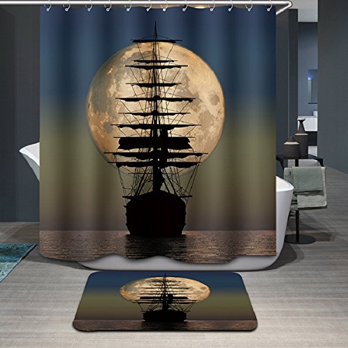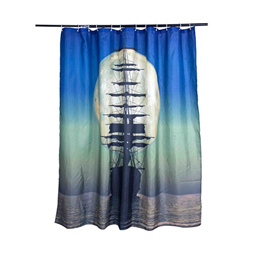 3D Digital Printing Shower Curtain with Hooks (Treated to Resist Deterioration by Mildew and Waterproof) - 72 x 72 inches,Sail