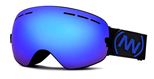 스키 스노보드 고글 남녀 겸용 UV컷 흐려 방지 안경 착용 가능 등산 설산설 놀이 (검정/청)