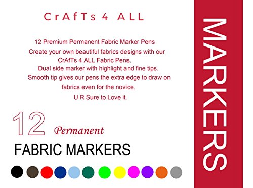 - Title : Fabric Markers Crafts 4 All® Permanent 12 Pack Dual TIP Premium Quality Assorted Bright Fine Writers Art Fabric Pens. Child Safe & Non Toxic.design Your Own T-shirts,bag,shoes