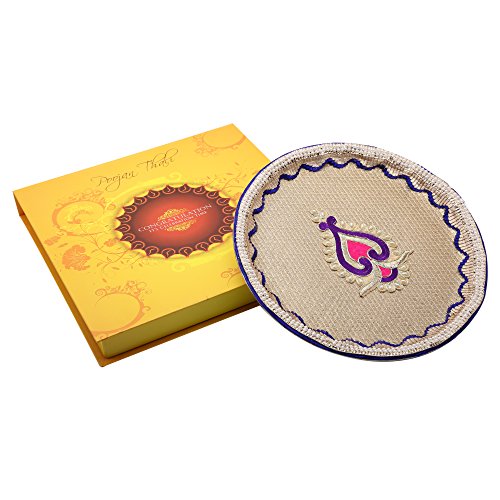- Exclusively decorated poojan thali set with colorful pearls, zari work, beads, studs, stones, kundan work, motifs, lace work, brocade work and other premiun material along with all items used to perform a virtuous Pooja at your own place.