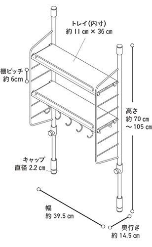 ■製品外寸法(約) : 幅39.5㎝ 高さ70㎝~105㎝ 奥行14.5㎝