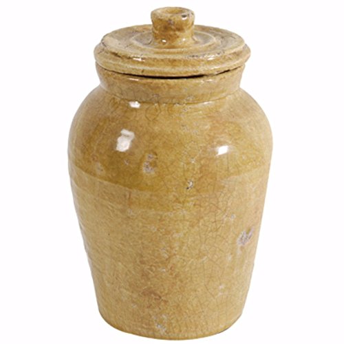 Benzara Lidded Jar in Distressed Brown