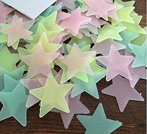 LiveGallery Pack of 200 Glow in the dark Colorful Stars Wall Decal Decor Fluorescent Noctilucent Plastic Multicolor Star Wall Stickers for Home Ceiling Wall Decorate Baby Kids Gift Nursery Room