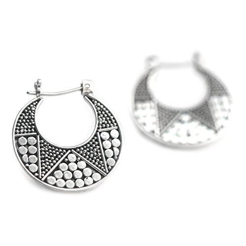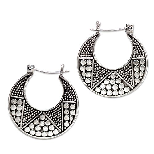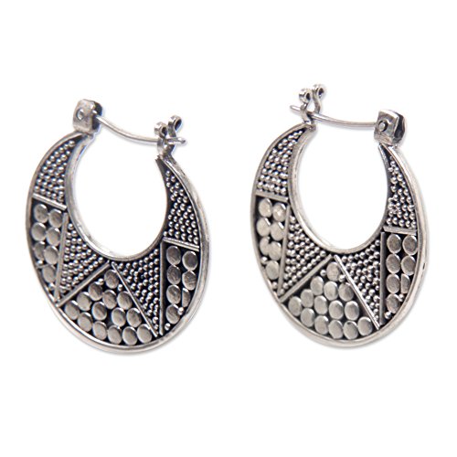 About this item: Kenari designs earrings rich in Balinese artistry. The sterling silver hoop earrings are crafted by hand featuring dotted details on one side, and a polished finish on the other side. .925 Sterling silver earrings and closures. Earrings measure 0.9" by 0.4".