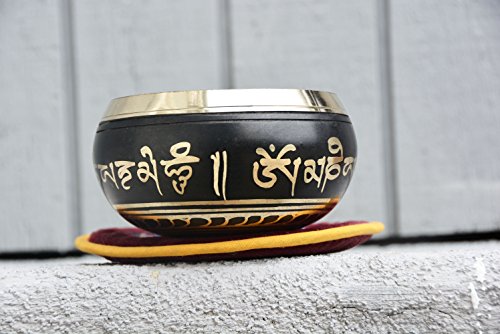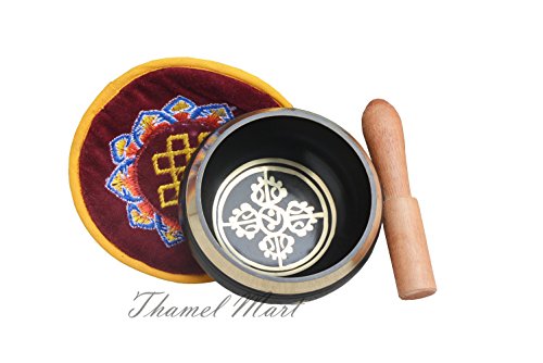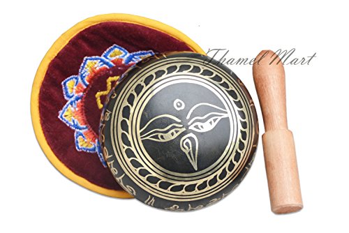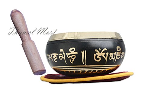 Studio : thamelmart Publisher : thamelmart Product Description Relaxing Tibetan Buddhist Prayer for Peace " Om Mani Padme Hum" Meditation Singing Bowl with wooden mallet. This is an absolutely gorgeous bowl with Great relaxing Sound. Hand Etched Tibetan Buddhist Prayer for peace on the Face, double dorji (Wisdom And Wealth) Inside and third eye (Remover Of Obstacles) at the Bottom of the bowl.creative exhaustion, nervous tension, psychic debilitation, hyperactivity, general lowered resistance, and migraines. Emotions associated with this chakra include bliss. The function is liberation and the symbol is the lotus flower. The endocrine influence is on the pineal gland. Price includes 1 wooden striker cushion . It measures approximately 4" diameter X 2.25" in depth and weighs 300 grams or 1.10 LB. retails over. 0