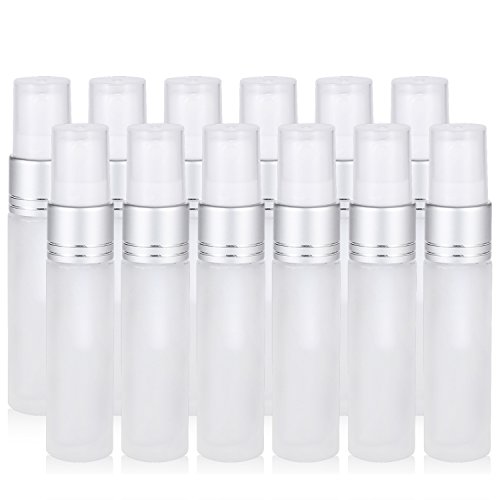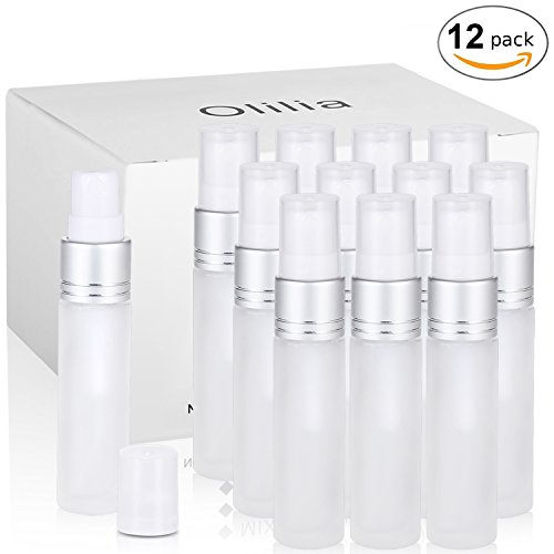 Olilia Frosted Glass Spray Bottles with Silver Fine Mist Sprayer 12 Pack of 10 ml, Refillable Empty Bottles Perfect for Essential Oils