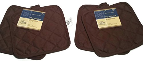 Pack of Four (4) Brown Home Store Cotton Pot Holders (2 Sets of 2)