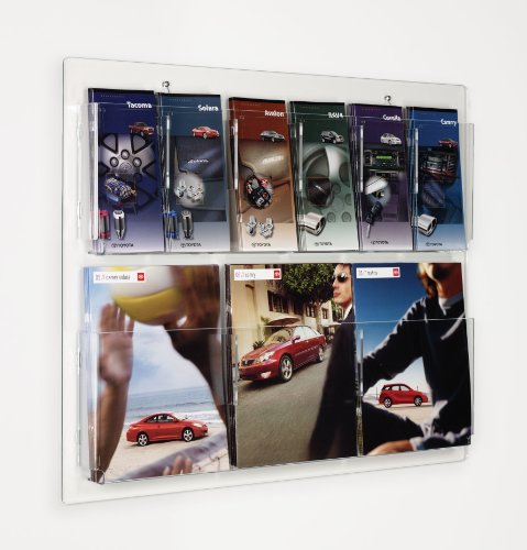 - Feature : Removable acrylic dividers accommodate both 8.5 x 11 inch catalogs and 4 x 9 inch brochures. / Wall-mounted display frees up valuable tabletop space. / Clear acrylic construction provides a complete view of your displayed literature. / Mounting hardware included with every unit purchased. / Displays2go SKU#: RP6CLR