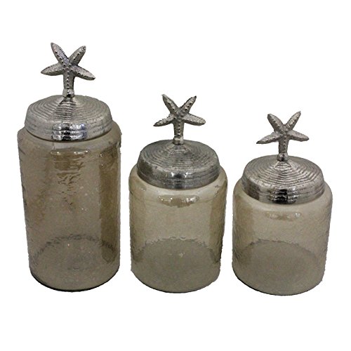 Essential Décor Entrada Collection Hammered Glass Jar with Lid Starfish, 15 x 6"/11.5 x 6"/11 x 6"