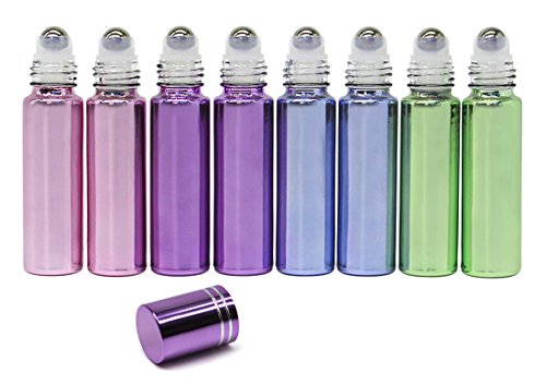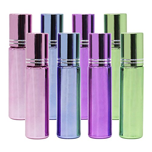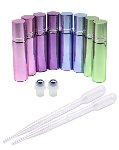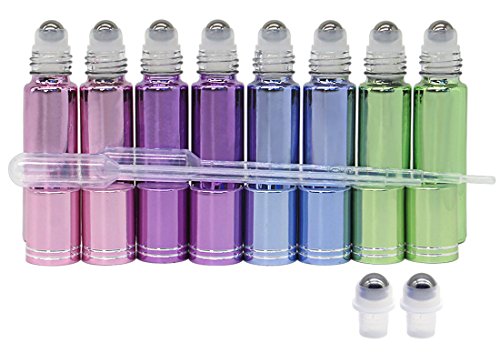 ColoVis 8 PC Roll-on Glass Bottles with Stainless Steel Roller Balls,10ml (1/3oz) 4 Colors Mixed,refillable Bottles for Essential Oils,pack of 8 and 1ml Dropper...