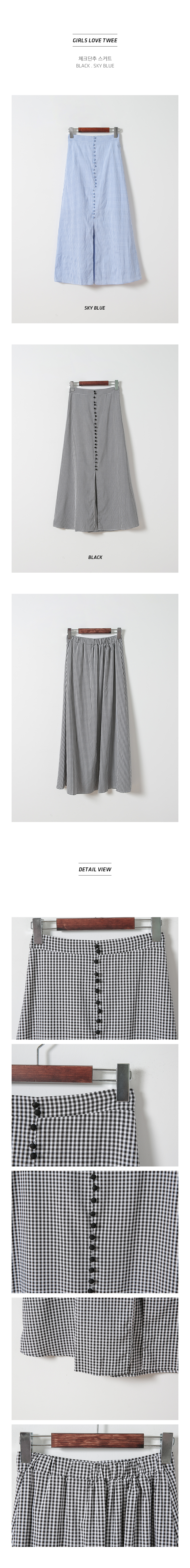 MD COMMENT여성스러움은 물로 캐주얼하게 연출하기좋은 체크단추 스커트입니다 허리는 뒷 밴딩으로 편안하게 착용하실 수 있구요 롱 기장이지만 앞트임이있어 다리라인이 슬림해보이면서 불폄함이 없어요 원단으로 싸여있는 귀여운 단추 포인트로티셔츠,블라우스,나시 등 다양한 상의와 함께 매치하여 러블리하면서도 페미닌한 무드의 룩을 완성해주는 아이템이에요!