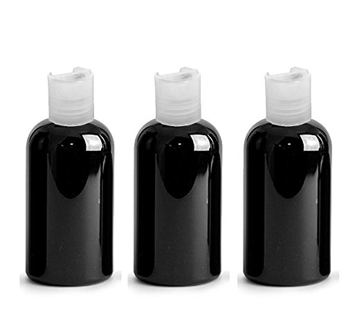 GRAND PARFUMS 4 Oz BLACK PET Boston Round Plastic Bottle (PBA Free) 120ml w/ Natural Disc Cap Dispenser Refillable Cosmetic Bottle Shampoo,...