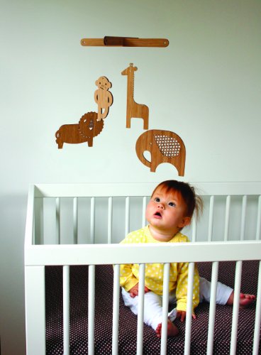 A modern addition to any child's room, this Petit Collage safari animal mobile is laser cut from sustainably harvested bamboo, an renewable resource. Due to the nature of the material, pieces may vary slightly in color and grain. Includes 4 laser cut pieces, rod and clear thread. Made in the USA and packaged by a non profit employing adults facing challenges.Feature