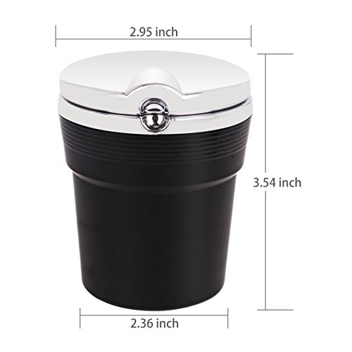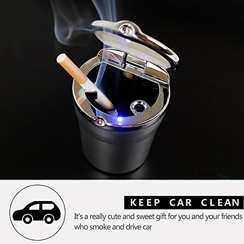 -. Feature : √ FIREPROFF MATERIAL - This Cigarette Ashtray is made of high density fireproof ashtray material, non-flammable. Fits in any cup holder to safely store cigarettes and ashes. / √ ELEGANT DESIGN - Wrapped with classy shell, keep your vehicle or room from smelling like an ashtray, reduce secondhand smoke. / √ FRIENDLY DESIGN - User-friendly design in night, the LED will light up automatically once the lid is fully open, battery is stored behind the lid. / √ MULTIPURPOSE - Ideal for office, home and car use and easy to carry with compact, portable design. / √ EXCELLENT RESULTS - Assist in removing odors and contain smoke, put out cigarette in seconds and keep your car far away from the intense smell linger.