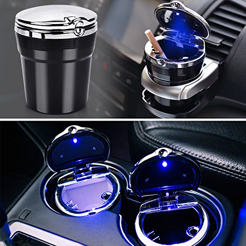 -. Title : Car Ashtray, Portable Stainless Auto Cigar Ashtray Car with Blue LED Light Ashtrays for Cars