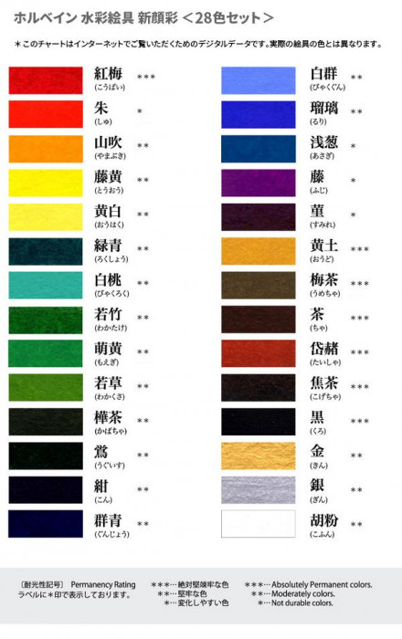 fk094igrjs日本の伝統的な色を、乾式法により固形にした水性絵具です サイズ 個装サイズ:3×28×13cm 重量 個装重量:422g 素材・材質 顔料、アラビアゴム セット内容 28色セット 製造国 日本 色紙、短冊、俳画に最適です 日本の伝統的な色を、乾式法により固形にした水性絵具です