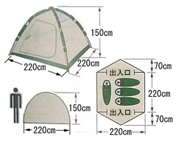 天井には通気性を高め開放感あるメッシュを採用。前後に出入口兼用の荷物室を装備しています。小物入れに便利なメッシュポケット付き。設営簡単ワンタッチフレームを採用!フルフライ仕様のドームテントです。紫外線95%カット!UV-PROTECTIONコーティング生地を使用しています。 |