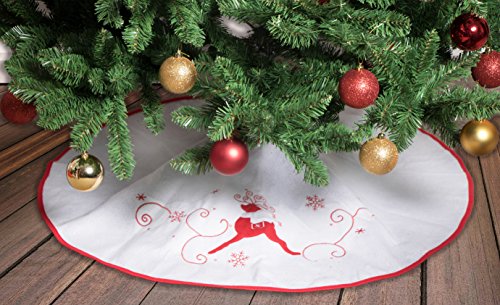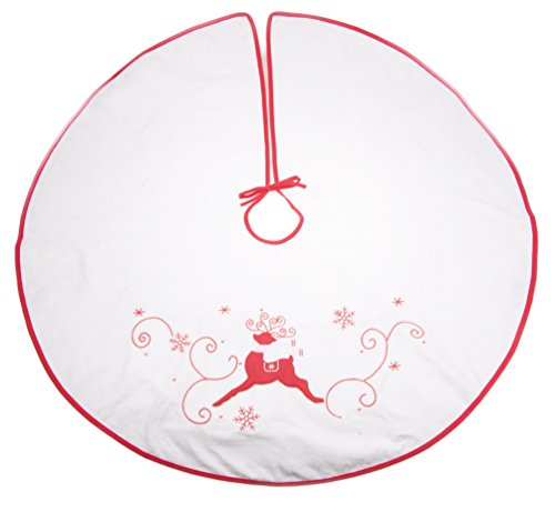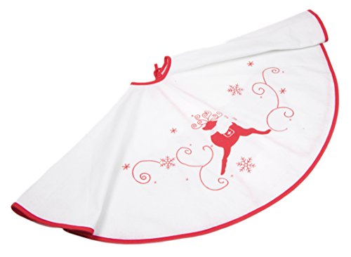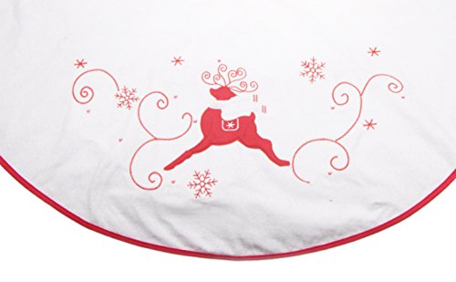 White Christmas Tree Skirt by Clever Creations | Red Embroidery with Leaping Reindeer | Traditional Theme Festive Holiday Design | Contain Needle and Sap | Perfect Size for Any Tree | 39" Diameter