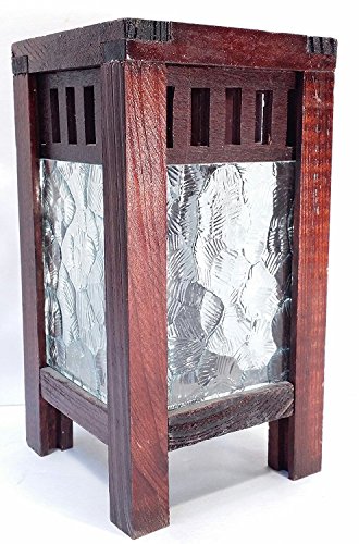 -. Title : Wood and Glass Rectangular Lantern for Candles or Bulbs