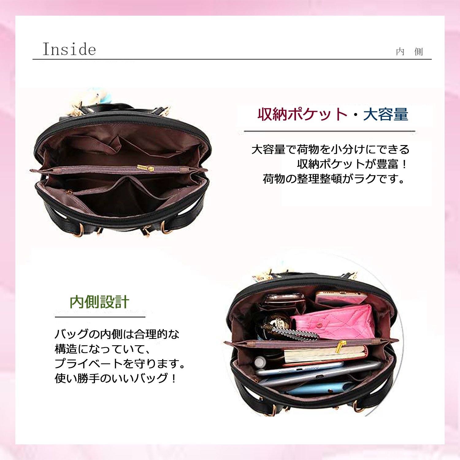 Inside is equipped with many small pockets and is very excellent for storage.