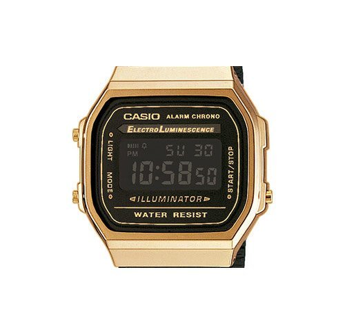 Brand, Seller, or Collection Name:Casio Model number:A168WEGB-1BEF Part Number:A168WEGB-1BEF Model Year:2016 Item Shape:rectangle Dial window material type:Mineral Display Type:Analog Clasp:Fold-over-clasp Case diameter:34 Case Thickness:10 millimeters Band Material:Stainless steel Band length:men Band width:18 millimeters Band Color:Black Dial color:Black Calendar:week Item weight:1.76 Ounces Movement:Quartz Water resistant depth:1 Meters