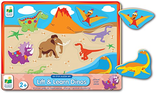 -. Binding : Toy -. Brand : The Learning Journey -. Color : Multi -. EAN : 0657092285459 -. Feature : This My First Lift & Learn tray puzzle features a dinosaur theme that will help engage your child in an interactive learning experience / The pictures are printed under the pieces to guide younger children in solving the puzzle / My First Puzzle sets are a great way to help your toddler begin developing their tactile and problem solving skills / Puzzle measures 15"x11" / For ages 2 and up -. IsAdultProduct : 0 -. Label : The Learning Journey International -. LegalDisclaimer : Products sold by NDN Outlet are "as is" without warranty of any kind, either expressed or implied, NDN Outlet assumes no liability or responsibility for any damage or malfunction that may occur. Your use of this product is at your own risk. Under no circumstances and under no legal theory shall NDN Outlet, its suppliers, or any other party involved in selling, or delivering this product be liable to you or any other person for any indirect, direct, special, incidental, or consequential damages arising from your use of this product. -. Manufacturer : The Learning Journey International -. Model : 285459 -. MPN : 285459 -. PackageQuantity : 1 -. PartNumber : 285459 -. ProductGroup : Toy -. ProductTypeName : TOYS_AND_GAMES -. Publisher : The Learning Journey International -. Studio : The Learning Journey International -. Title : The Learning Journey My First Lift & Learn Dino Puzzle -. UPC : 657092285459 -. Warranty : 90 day warranty against manufacturer defects