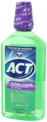 ACT Total Care Rinse promotes strong teeth, healthy mouth and fresh breath. Strengthens teeth. Rebuilds enamel. Helps prevent cavities. Promotes healthy gums (as part of a dentist advised oral health program). Kills germs. Freshens breath. No. 1 dentist recommended brand (among fluoride mouth rinses). Has 0.02% Sodium fluoride content.Feature