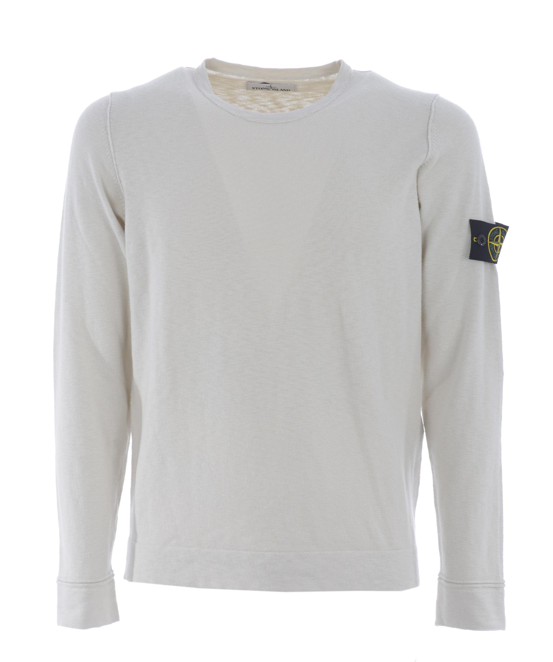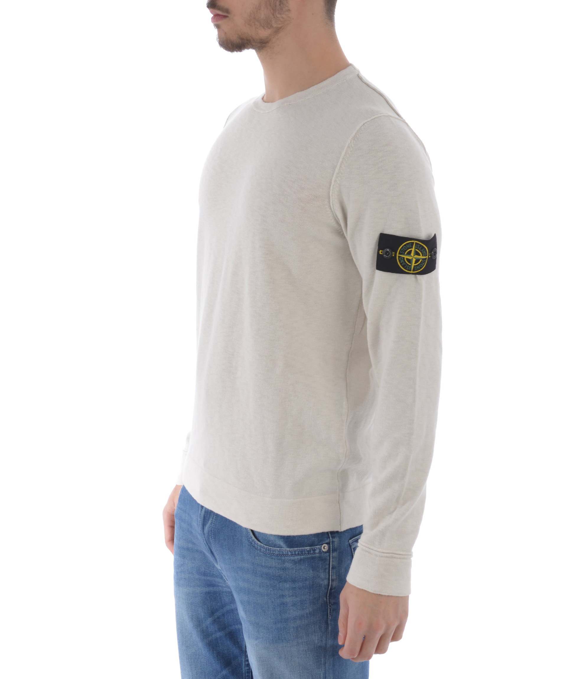 Maglia Stone Island in misto cotone Sabbia effetto mosso. Girocollo. Manica lunga. Patch logo in lana sulla manica sinistra, removibile. Misura in foto M 78% cotone, 22% poliammide