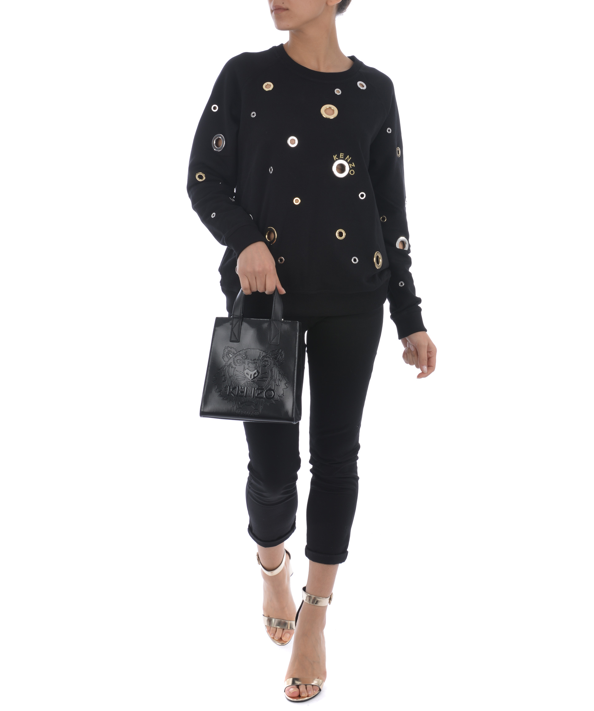 Tiger Shoulder Bag from Kenzo: Black Tiger Shoulder Bag with brand embossed logo on front, top handle, silver-tone hardware, internal zipped pocket, removable and adjustable shoulder strap