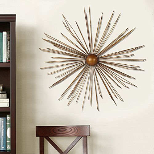 Home'Art Decorative Gold-Color Iron Wall Hanging Accents Decor Widget, Contemporary Modern Starburst Design
