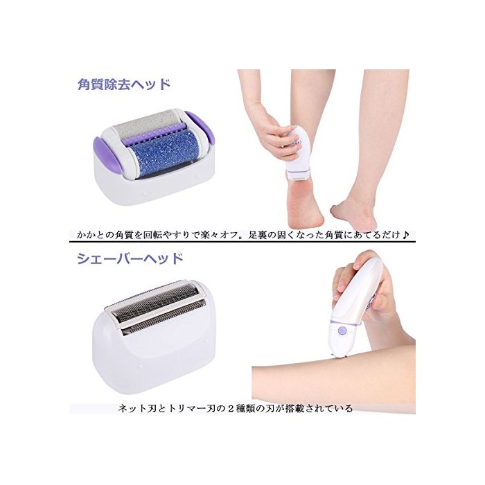 원본상품명: Scheam 多機能充電式毛器 一台3役 シェバ 3ヘッド ムダ毛理 角質除去 フットケア 家庭用 ヘッド水洗い可能 納ポケット付き 男女兼用