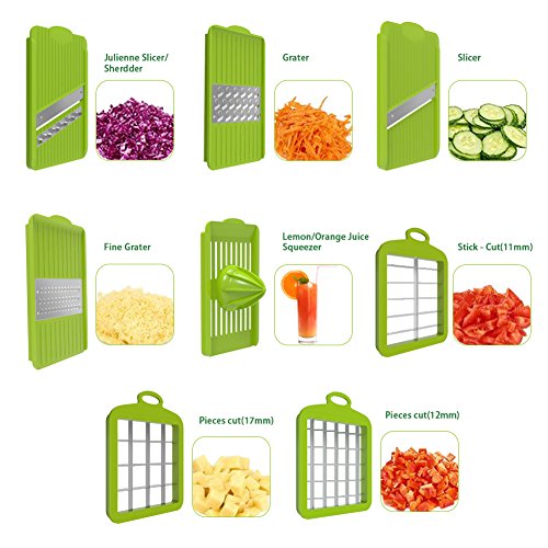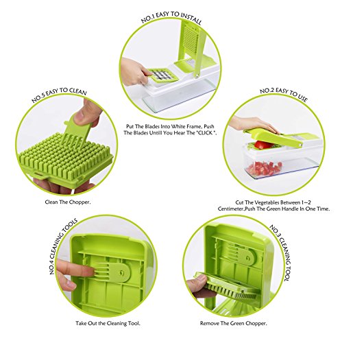 CHOP FOOD LIKE A PRO: The Professional Salad Chopper comes with various sharp, exchangeable blades made of stainless steel. You can get thick or thin cuts and bits of fruits and veggies, cubes, spiral wavy slices and essentially any shapes and sizes you like.
