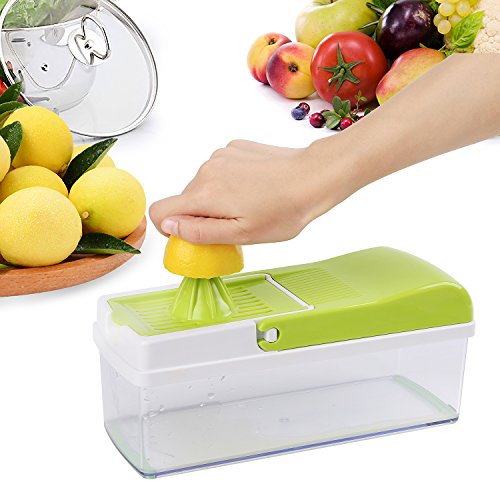 It has multiple interchangeable blades so that you can create your salad just as you want it! The sharp blades can cut through any fruit and vegetable, even carrots and apples.