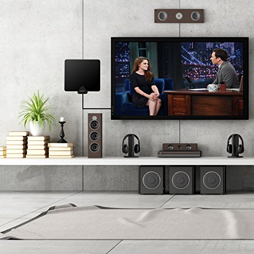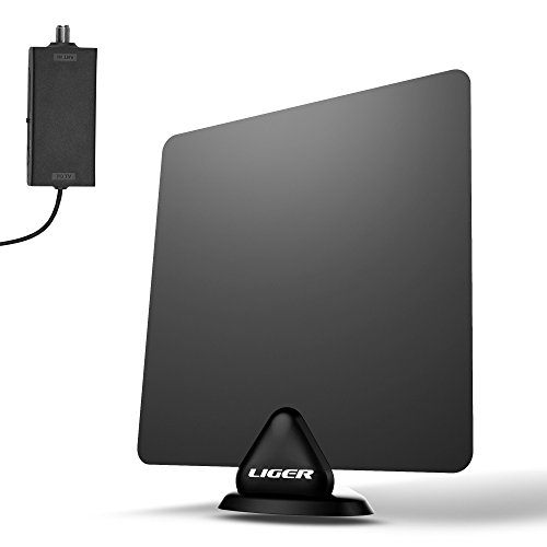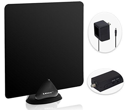 HDTV Antenna and Amplifier, Liger 50 Mile Range Ultra-Thin Indoor Antenna and Antenna Amplifier - Receive HD Television Signals for Free - Includes 10 ft Coaxial cable, Adhesive and Stand.