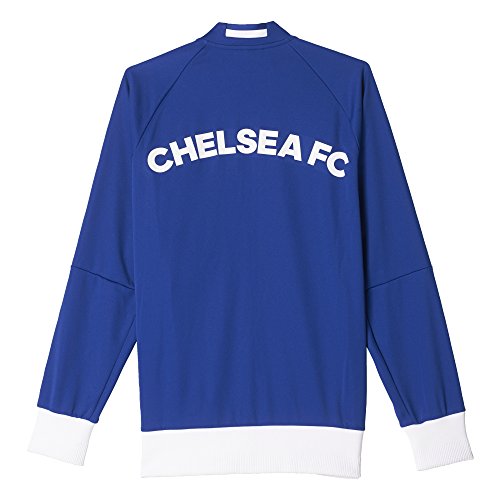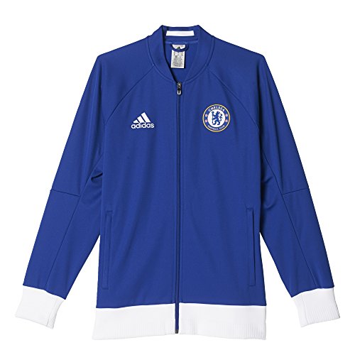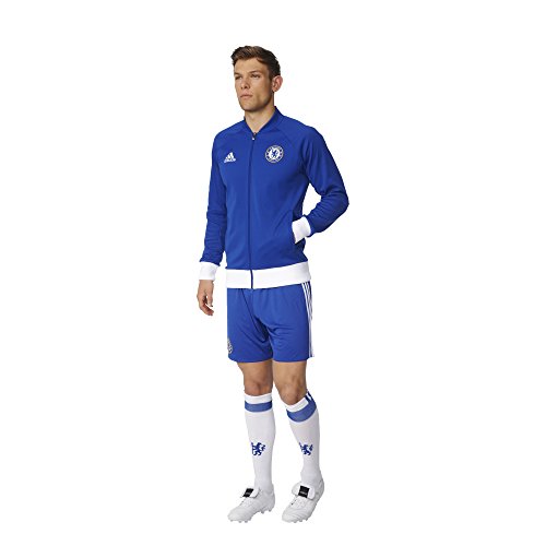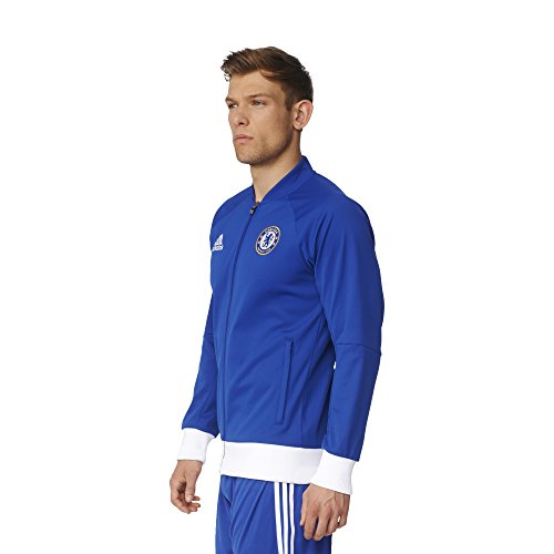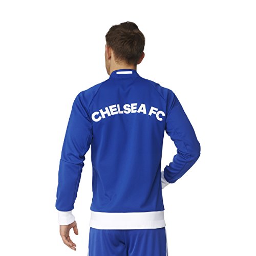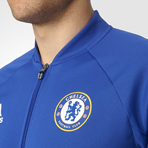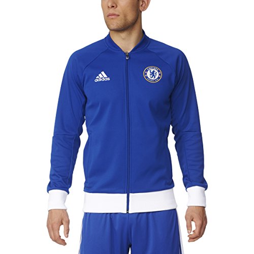 -. Brand : -. Color : Chelsea Blue, White -. Department : mens -. Feature : Front zip pockets / Full zip with stand-up collar / Raglan sleeves; Dual-structured ribbing on cuffs and hem / Slim fit; Chelsea FC woven badge on left chest / This product is part of the sustainable product program: Products are made in more sustainable ways to make the world a better place; Every fibre counts: Recycled polyester saves resources and decreases emissions -. Label : -. Manufacturer : -. Model : AP1550L -. MPN : AP1550 -. NumberOfItems : 1 -. PackageQuantity : 1 -. PartNumber : AP1550 -. ProductGroup : Apparel -. ProductTypeName : APPAREL -. Publisher : -. Size : Large -. Studio : -. Title : Men's Chelsea FC Anthem Track Jacket