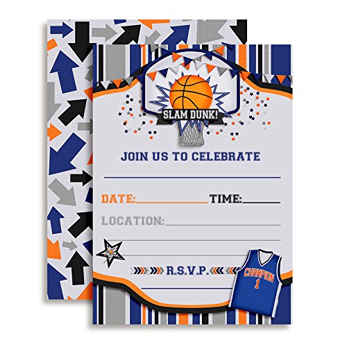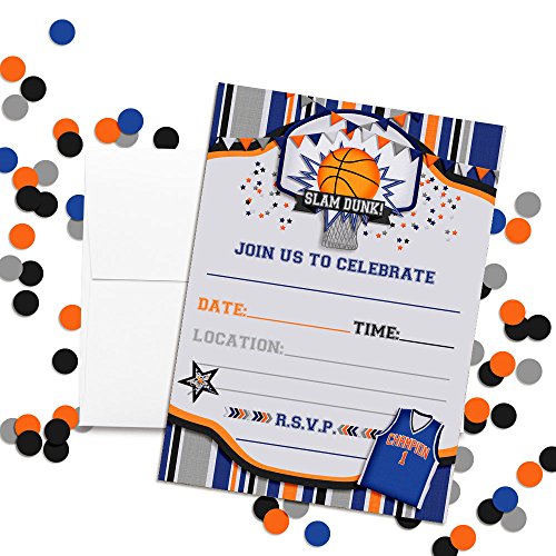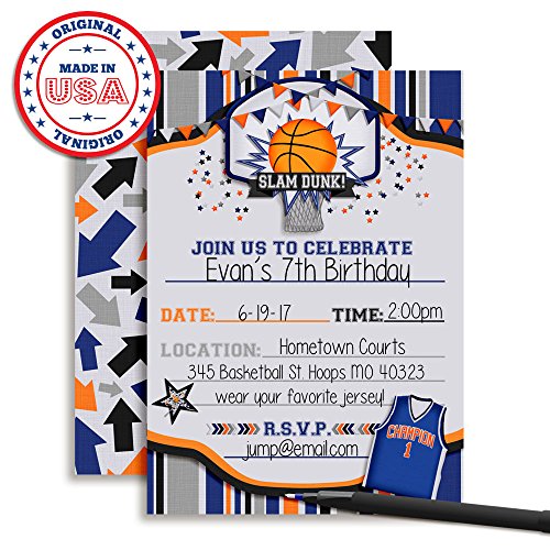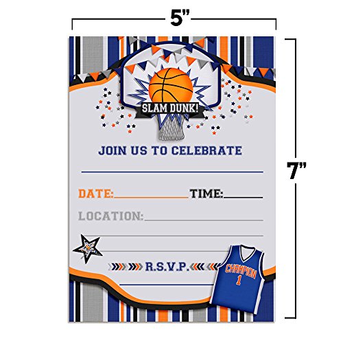 *** Bigger... Better... and Best of All... Cuter. Presenting Basketball Birthday Invites Designed by a Mom for Moms. Set of 10 Fill-In Postcards (5"x7" Each) Comes with 10 White Envelopes *** *2-sided printing for that added pop of color extra touch of quality *Larger 5"x7" size for bigger visual impact (most others are only 4"x5.5") *Heftier 80# cardstock with a smooth matte finish (so it's easier to write on) Even Includes Custom-Size Envelopes Hunting for just the right envelopes? Rest easy. Your 10 birthday postcards come with 10 crisp white envelopes, perfectly sized to fit the cards perfectly. What's more, you can count on these eye-popping invites for all-American craftsmanship: They're designed, printed carefully hand-packaged right here in the USA. To top it off, the complete set is fully backed by Amazon's 30-Day Guarantee. OMG, They're the Absolute Cutest... So Add to Cart Right Away!! Why choose Invitations from Amanda Creation? *Every invitation is custom designed by Amanda herself! *Amanda CreationTM has been in business since 2011 bringing unique party items to moms and children. *Our invitations are completely unique, you won't find designs like these anywhere else. Stand out with your celebrations and get the most creative and innovative invitations instead of mass produced invitations that can be found anywhere. *We pay attention to the smallest details, because they are hand designed complete care is taken in making them extra special to be the most beautiful invitations you have ordered. *We stand behind our product, if you are not completely satisfied for any reason simply contact us to return your product for a full refund. 0