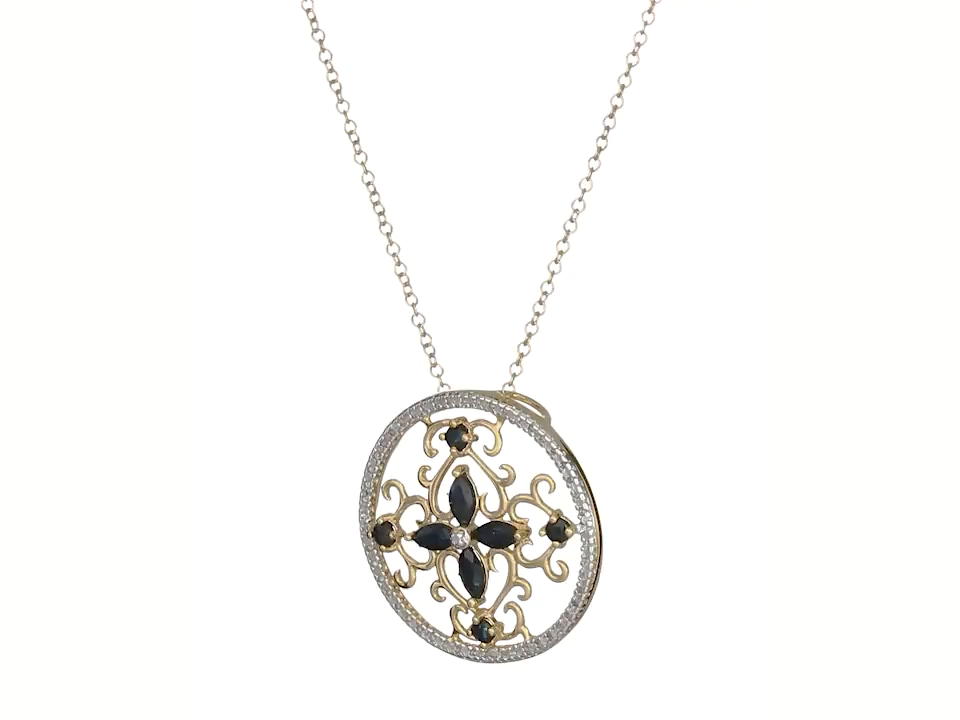 Yellow Gold-Plated Sterling Silver Necklace with Diamonds and Gemstones