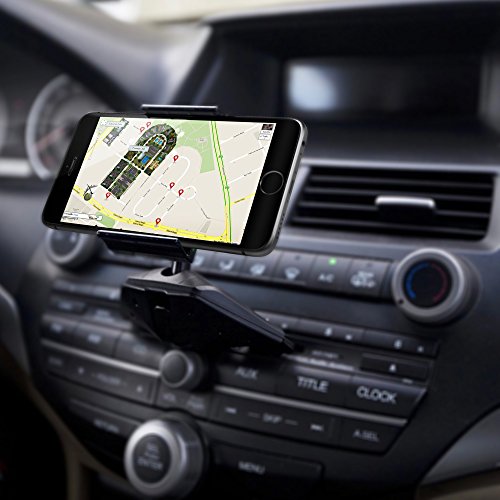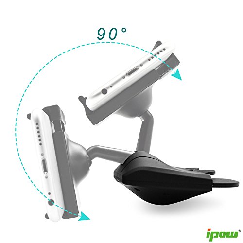 Ipow 360° Universal CD-Slot Smartphone Mount is ergonomically designed to install easily and quickly and is a great tool that works with most smartphone Fits into the compact disc slot of your car without any tools or mechanism. Designed with rubber grip, the holder will securely hold your device without scratches or damages and fully adjustable. The mount has a fully rotatable holster hat twists and turns so you can view your device vertically or horizontally.